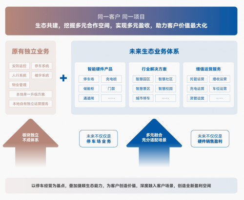 停车场作为高频刚需场景,背后连接着丰富的用户与商业资源。加盟捷顺科技,经销伙伴不仅可继续原有业务,还可以叠加捷顺全生态能力,包括车行/人行/充电全系智能硬件能力、主流行业解决方案能力及车位/车场运营能力,实现“一客户多产品、一项目多收益”,真正挖掘客户深度价值,拓宽盈利边界。