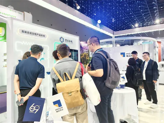 作为海正药业合成生物学技术的核心平台,澐生合成在本次展会上重点展示了盐酸氨基葡萄糖、依克多因、麦角硫因、肌肽、维生素D3系列(含25-羟基维生素D3)、维生素K2、PQQ等在研产品,覆盖抗氧化、骨骼健康、关节养护、皮肤修护等应用领域,吸引了众多行业伙伴及专业观众驻足洽谈。
