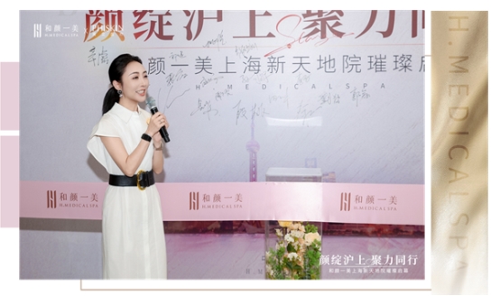 张伍新先生在致辞中深情回顾了和颜一美品牌的发展历程。八年前,和颜一美怀揣着对医美行业的敬畏与初心,种下了“美”的种子,历经数年耕耘,和颜一美上海首院正式落成,这是品牌在全国战略布局中至关重要的一步,上海新天地院的开业,其意义远不止于地域范围的拓展,它更是和颜一美对“美不远人”这一品牌口号的生动诠释,是和颜一美对医美行业初心的不忘坚守与切实践行。 期待和颜一美上海新天地院能成为上海美丽事业的璀璨名片,为医美行业注入全新活力与积极能量,同时希望能够与上海的同行们相互学习、相互交流,共同推动医美行业的健康发展,让更多的人能够安全、放心地追求美丽。