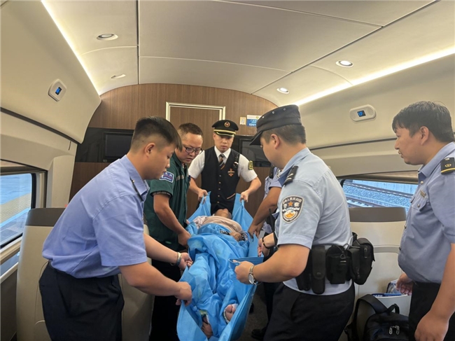 2025年9月19日,由京广动车队高12班值乘的G6079次列车,正点从吉首东站驶往凤凰古城站。列车运行途中,列车长李志鹏接到凤凰古城站值班站长的电话,告知1号车厢有一位使用担架的旅客需在该站下车,且该旅客无同行人员陪同,希望列车方协助做好交接准备。
