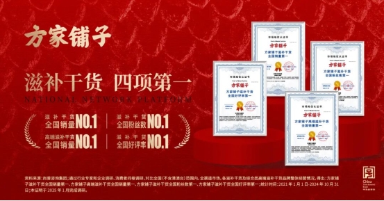 不止黄冰糖,作为始于 1906 年的中华老字号,方家铺子在滋补干货领域的实力早已得到权威认证。依托全球 29 大原产基地、108 亩现代化产业园的全产业链布局,品牌恪守“货真价实,童叟无欺”的祖训,“坚持利润 3%”的经营原则,实现从源头到终端的全链条品质把控。截至目前,它已累计服务超 2000 万家庭,连续 7 年稳居京东滋补干货类目销量榜首,更获尚普咨询集团认证“滋补干货全国销量第一”“高端滋补干货全国销量第一”“滋补干货全国粉丝数第一”“滋补干货全国好评率第一”,还拿下 “京东最受用户信赖奖”,这些成绩的背后,是无数用户用一次次选择写下的信任。